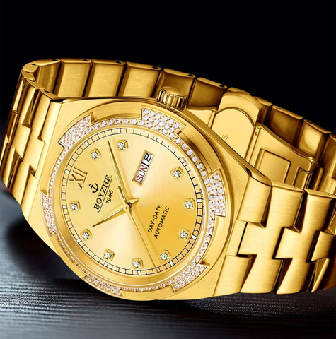 Lujo Moissanite Diamond 5 ATM resistente al agua para hombres caja de oro de alta calidad Japón 8215 reloj mecánico reloj automático